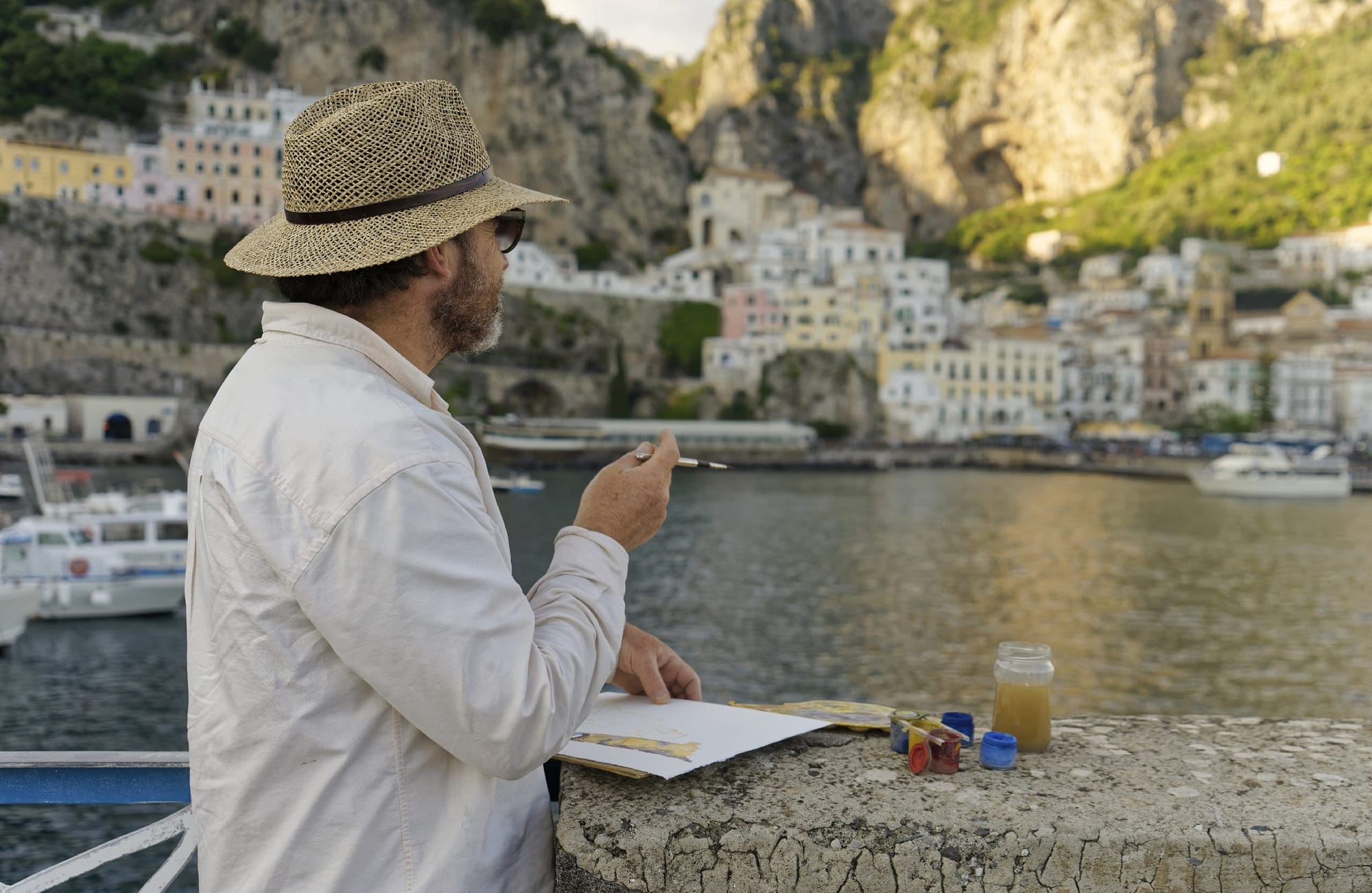 Привет. Лучшее место чтобы рисовать Амальфи это морской порт города. Главный Маяк если быть точным. А этот дядька из Британии. Первый раз он был на побережье Амальфи лет 10 назад. На этом самом месте он нарисовал свою лучшую (читай самую дорогую) картину. Картина успешно продалась и последние годы он пытался воссоздать то же настроение по памяти. В Лондоне это получалось скверно. Мы видели наброски. Слишком много коричневого и серого. Завтра он закончит новую картину Амальфи. Приглашал посмотреть…